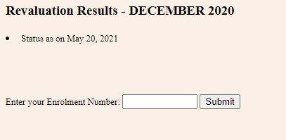 - On the homepage, under, "News and Announcements" click on "Re-evaluation Result for December 2020 Term End Examination"