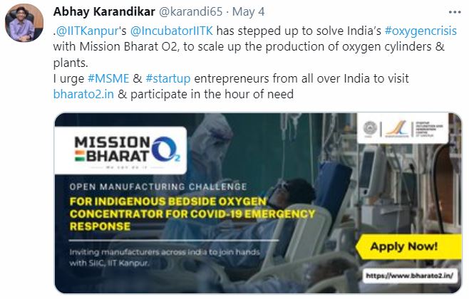 Professor Karandikar added, β€œAs India reels under the impact of the second wave, IIT Kanpur and SIIC have decided to support more indigenous innovators, this time to address the oxygen crisis in the country.”