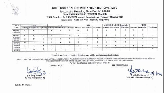 Along with the MBBS theory 1st professional exam dates, the university has also released the IPU MBBS first professional practical exam schedule. According to the MBBS 1st professional IP University practical exam dates, the practical exams will begin on March 3, 2021 and end on March 9, 2021. The practical exams for the 1st professional MBBS exams will be held at the respective institutions.