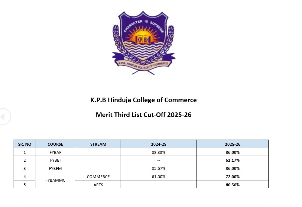 Mumbai University has announced its Third Merit List 2025 for undergraduate admissions. Several affiliated colleges, including Ruia College, BK Birla College, KPB Hinduja College of Commerce, and St. Xavier’s College, have published their merit lists on their respective official websites.