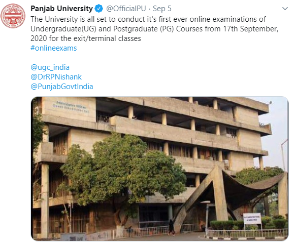 Panjab University to conduct UG and PG exams online from September 17