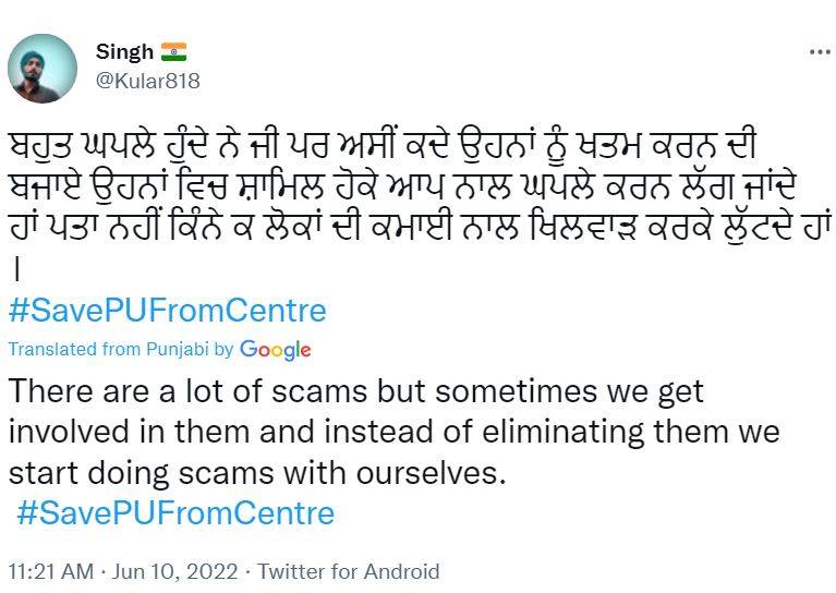"There are a lot of scams but sometimes we get involved in them and instead of eliminating them we start doing scams with ourselves. #SavePUFromCentre"