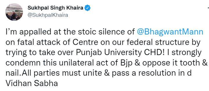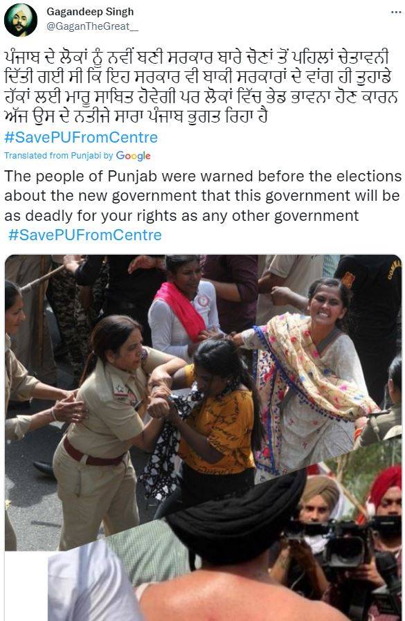 "The people of Punjab were warned before the elections about the new government that this government will be as deadly for your rights as any other government #SavePUFromCentre"