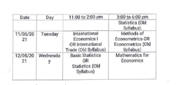 The MA Economics end-semester exams will be held in two slots, the first from 11 am to 2 pm and the second between 3 pm and 6 pm. The university will start the MA end-semester exam on May 3 with Macro Economics 2 and Micro Economics 2 or Micro Economics Analysis 2 paper for the old syllabus students.