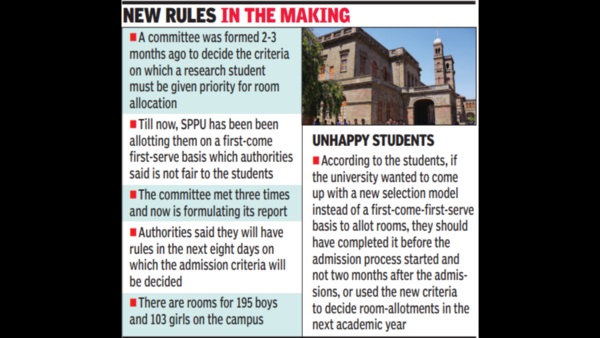 SPPU Officials said that they are coming up with new selection criteria for allotting hostel rooms to research students who said the university is lethargic.
