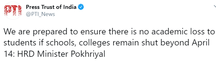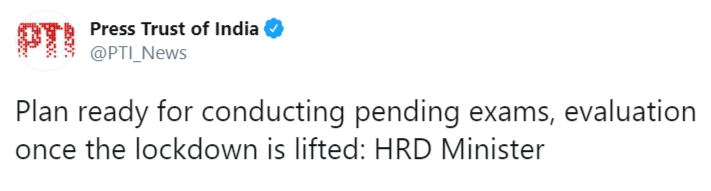 The minister further added that they are regularly reviewing the plan of action prepared by the universities and higher educational institutions. He also revealed that the government is ready with a plan for conducting pending examinations and evaluation work once the lockdown is lifted. On March 24, PM Modi declared the 21-day lockdown until April 14. The government is preparing an action plan to conduct pending examinations and continue the evaluation work so that the results don’t get delayed. The same will be shared soon after reviewing the ongoing tense situation due to COVID-19 spread.