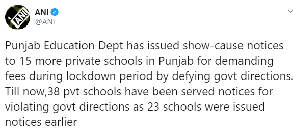The Education Minister Vijayinder Singla sent notices to erring school when they started sending fee reminders to parents via SMS. Some even called the parents and asked them to make payments.