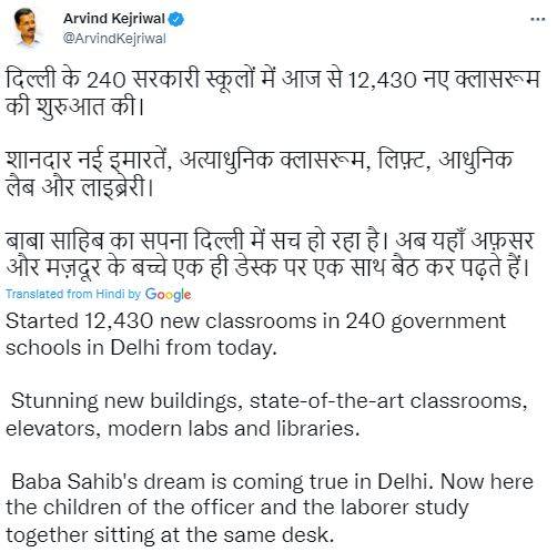 "It was the dream of Baba Sahab (Dr BR Ambedkar) that every student get the best education. Unfortunately, even after 75 years of Independence, his dream couldn't come true in other states. I am happy that his dreams have started coming true at least in Delhi," he added.