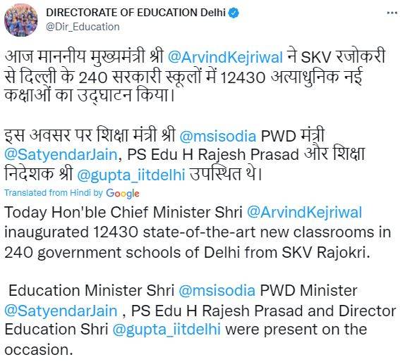 The minister posted a tweet in Hindi, stating that the country will not bow down before these corrupt people and move ahead. "All the corrupt people of the country have teamed up against us. Today, we will give them a befitting reply by inaugurating 12,430 modern classrooms in Delhi schools,” Kejriwal tweeted.