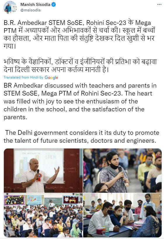 “BR Ambedkar discussed with teachers and parents in STEM SoSE, Mega PTM of Rohini Sec-23. The heart was filled with joy to see the enthusiasm of the children in the school, and the satisfaction of the parents. The Delhi government considers it its duty to promote the talent of future scientists, doctors and engineers.” Sisodia added.