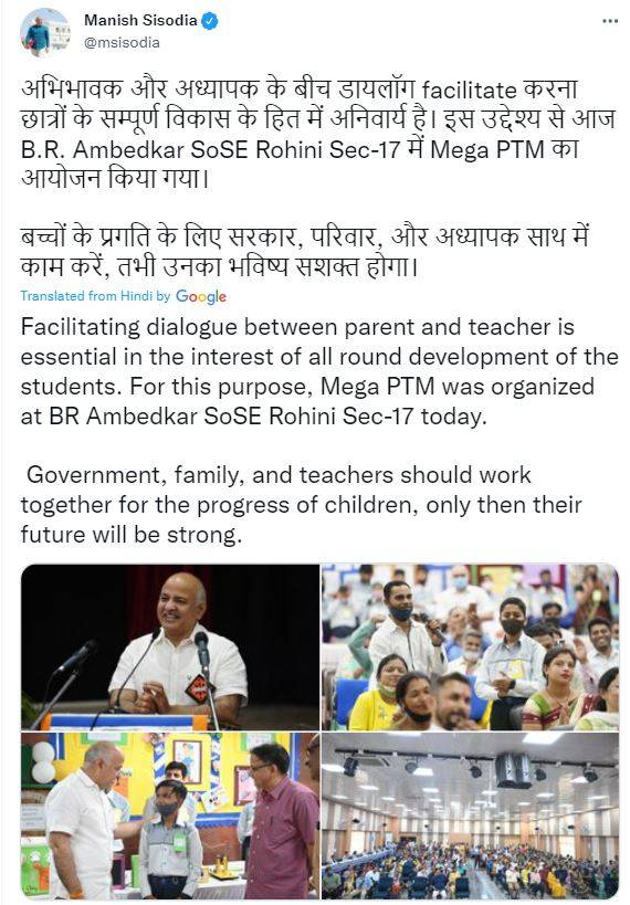 Another tweet by the minister reads, “Facilitating dialogue between parent and teacher is essential in the interest of all-round development of the students. For this purpose, Mega PTM was organized at BR Ambedkar SoSE Rohini Sec-17 today. Government, family, and teachers should work together for the progress of children, only then their future will be strong.”