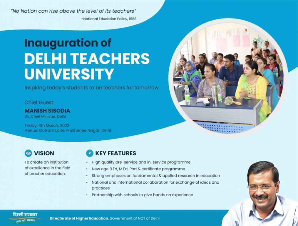 Announcing the key features of the Delhi Teachers University, the government of the National Capital said: