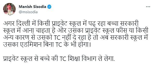 While addressing a press conference, Deputy CM claimed that many students are not being able to join Delhi government schools as private schools are “refusing to issue TCs”. “I want to appeal to the parents who are willing to shift their students from private to government schools that they should not worry about obtaining TC. The quality of education in government schools has vastly improved and many parents want to get their children admitted to these schools. However, in many cases, private schools are not issuing TCs. But a decision has been taken no such student will be denied admission for not having a TC. That aspect will be taken care of by the Directorate of Education,” Sisodia said.