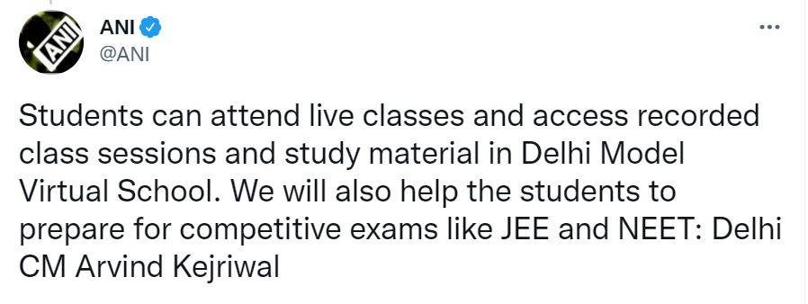 The minister further stated that students enrolled at Delhi Model Virtual School would get assistance in preparation for engineering and medical entrance exams such as JEE Mains, NEET, etc.