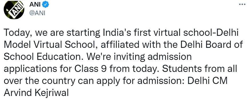 DMVS Class 9 Admissions 2022: Delhi Chief Minister Arvind Kejriwal has invited students from all across the country to apply for Delhi Model Virtual School admissions. The school has commenced the admission process for Class 9. According to an official tweet by a media agency, the Delhi CM said, “Today, we are starting India's first virtual school-Delhi Model Virtual School, affiliated with the Delhi Board of School Education. We're inviting admission applications for Class 9 from today. Students from all over the country can apply for admission.”