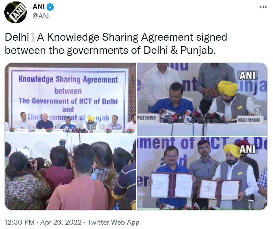 The government of Delhi and Punjab has signed a knowledge-sharing agreement to enable better health, education infrastructure and facilities. The Chief Minister of Delhi, Arvind Kejriwal, has made the announcement regarding the collaboration. The governments of the two states announced their decision while conducting a live press conference today, i.e. April 26, 2022. The signing of the memorandum of understanding (MoU) took place between Delhi CM and Punjab CM Bhagwant Mann.