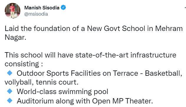 A tweet posted from the official Twitter handle of Delhi Deputy Chief Minister Manish Sisodia states, "The new building of this school has been designed keeping in mind the overall development of the children. This school building will be different from the normal schools and the entire school premises would be involved in the learning process of the children.”