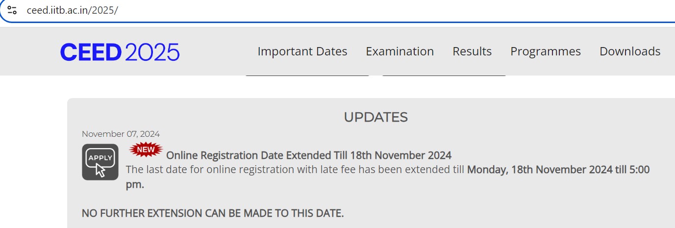 CEED 2026 application form is available online at ceedapp.iitb.ac.in/CEED/home.jsp. The form is open from October 01, 2025 till November 10, 2025.