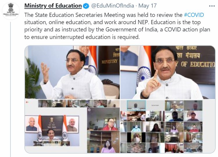 The Ministry of Education tweeted, “The State Education Secretaries Meeting was held to review the COVID situation, online education, and work around NEP. Education is the top priority and as instructed by the Government of India, a COVID action plan to ensure uninterrupted education is required.”