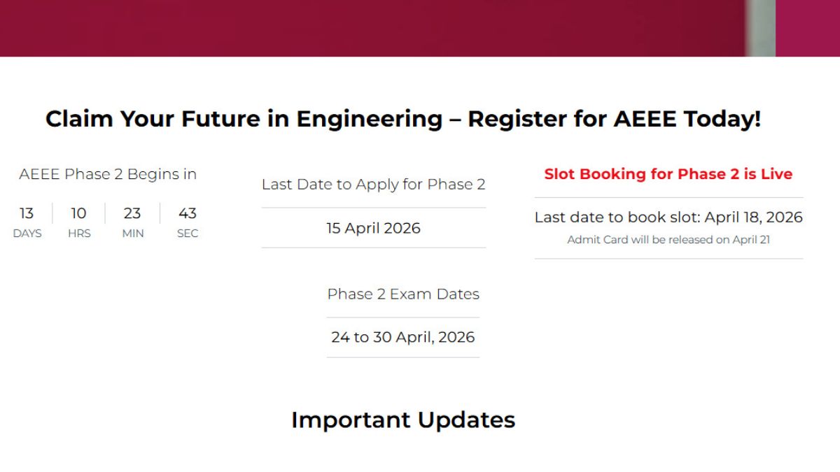 AEEE 2026 slot booking for phase 2 is now open. Admit cards release date has also been notified. Check details below.