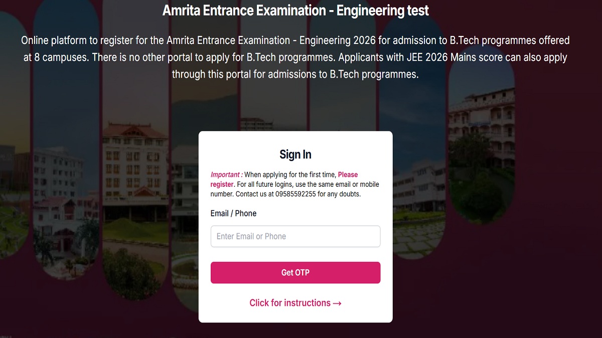 AEEE Registration: Amrita Vishwa Vidyapeetham is accepting AEEE registration 2026 till tomorrow, January 15. Candidates who wish to apply for phase I of Amrita Entrance exam must complete AEEE 2026 registration online at official website aeee.amrita.edu. AEEE registration can be done online only. Whereas, to fill AEEE 2026 application form, they have to fill in their personal and academic details, pay registration fee and upload scanned documents.