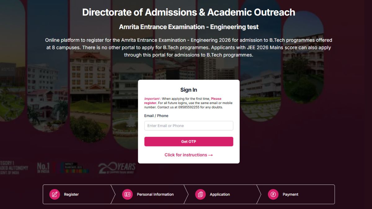 Amrita Vishwavidyapeetham will close the AEEE phase 2 registration on April 15. Following the registrations, the candidates will be able to book their exam date and time via the slot booking process.