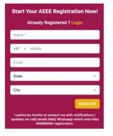 The AEEE 2026 application form can be filled out online only at the Amrita Online Application Portal (AOAP). The portal is active for AEEE 2026, however, the registrations are yet to start.