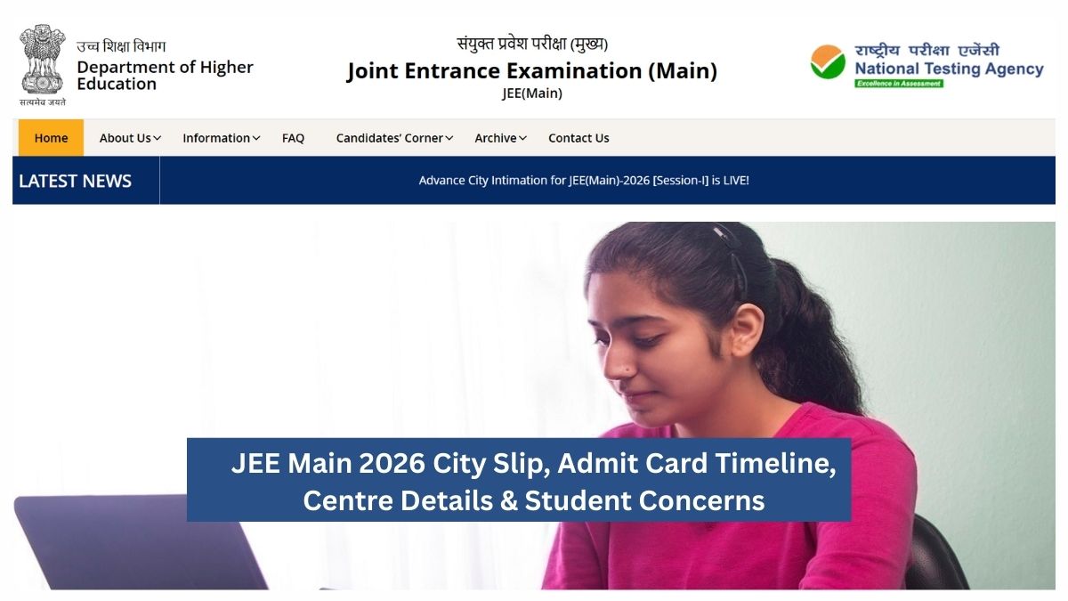 JEE Main 2026 Updates: NTA has released city intimation slip, now JEE Main session 1 admit card 2026 is awaited. Students can check JEE Main hall ticket timeline, centre details and other information here
