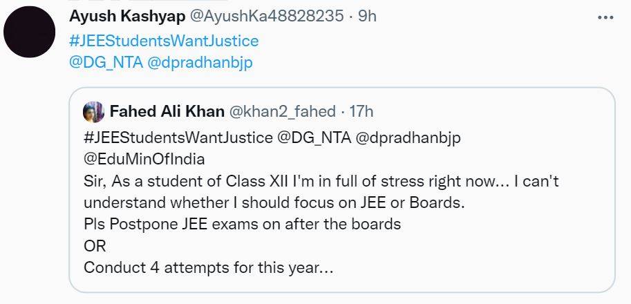 After #JEEStudentsWantJustice trend; JEE Mains 2022 Students planning demonstration outside NTA