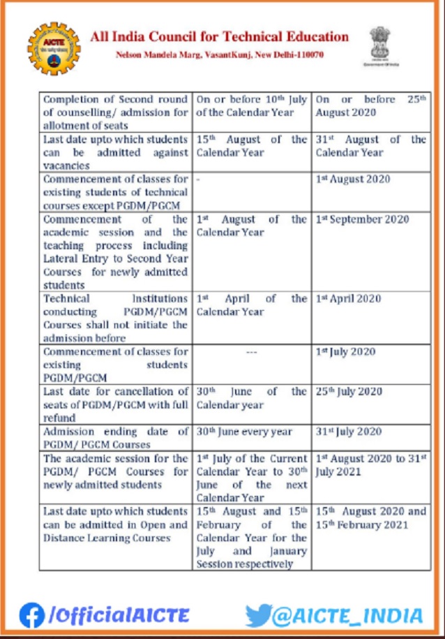 AICTE Academic Guidelines 2020: Engineering first round counselling extended up to August 15