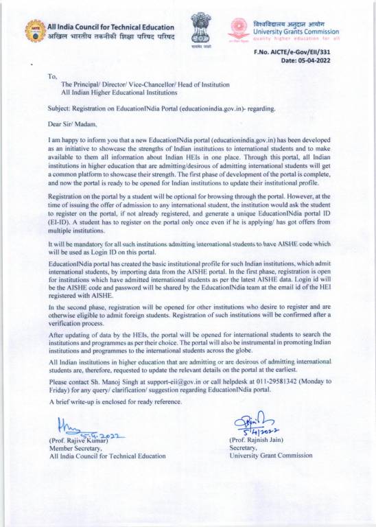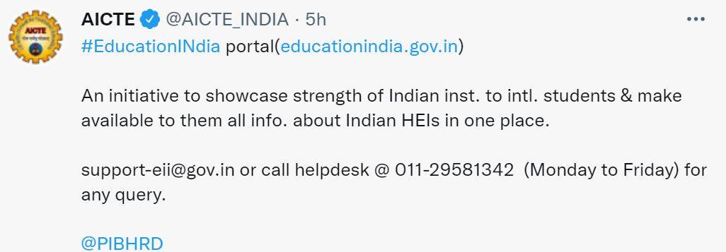 According to the official notice, candidates seeking more details on AICTE EducationIndia portal may contact Manoj Singh at support-eii@gov.in or call the helpdesk at 011-29581342 for any query/ clarification/ suggestion regarding EducationIndia portal. For more related details, candidates can visit the official site of AICTE or UGC.