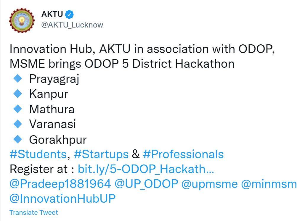 Innovation Hub, Dr. APJ Abdul Kalam Technical University and ODOP Cell, MSME brings the following 5 districts hackathon: