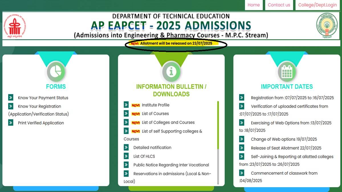 AP EAMCET Seat Allotment 2025: Andhra Pradesh State Council of Higher Education (APSCHE) will release the AP EAMCET Seat Allotment Results for AP EAMCET 2025 on July 23, 2025. This marks a crucial step in the admission process for candidates seeking admission to Engineering in the state. To check their AP EAMCET Seat Allotment status, candidates need to visit the official website, eapcet-sche.aptonline.in/EAPCET and log in using their EAMCET hall ticket number and date of birth.