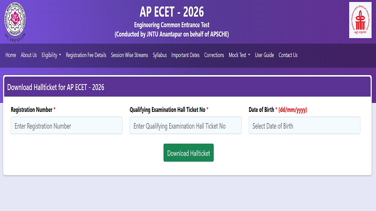 AP ECET Hall Ticket 2026: JNTU Anantapur has issued hall ticket of AP ECET for all registered candidates. They can get AP ECET hall ticket 2026 download link at official website cets.apsche.ap.gov.in/ECET/ECET/ECET HomePage. They have to use their registration number, date of birth & qualifying exam hall ticket to download their AP ECET 2026 admit card.