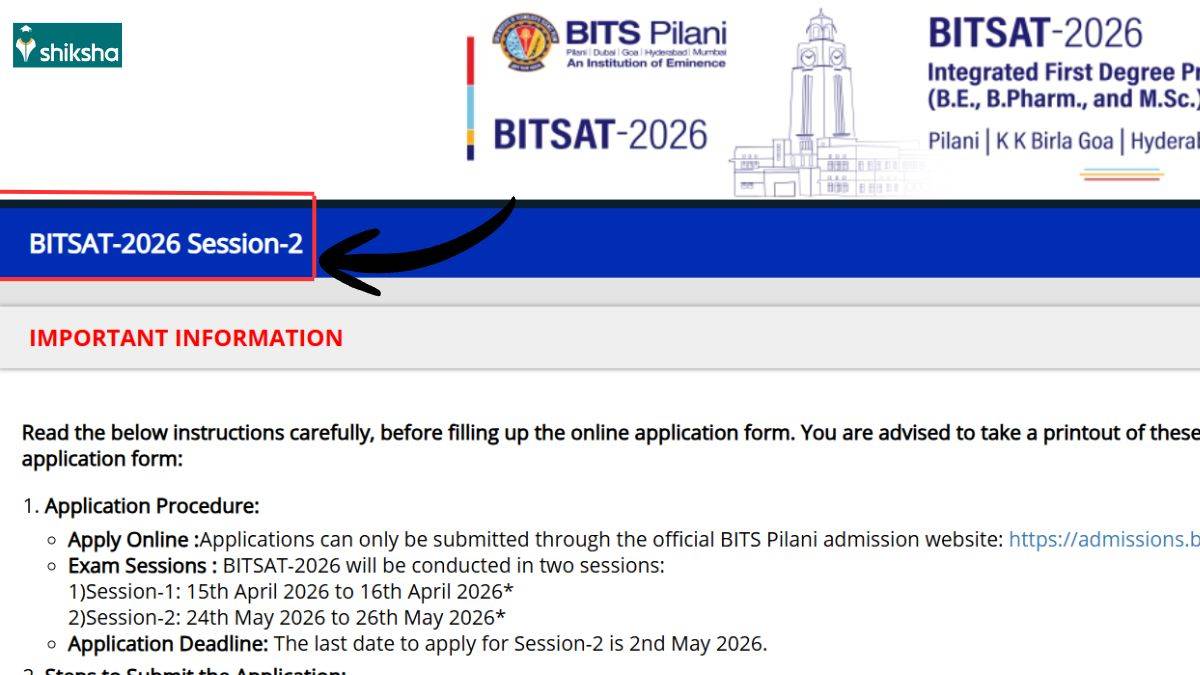 The Birla Institute of Technology and Science (BITS), Pilani has commenced the BITSAT 2026 session 2 registration at admissions.bits-pilani.ac.in. The BITSAT 2026 registration last date for session 2 is May 2. The registration process for BITSAT 2026 has started earlier than expected since the application window was scheduled to open on April 20. Candidates can apply for the BITSAT session 2 exam to get another chance at the Birla Institute of Technology and Science Admission Test. The authority will consider the best of two attempts for admission.