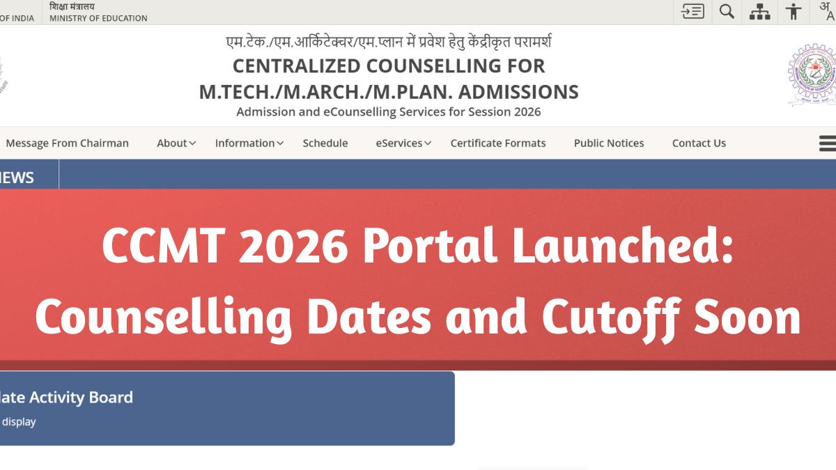 CCMT 2026 Portal Launched: Counselling Dates and Cutoff Soon at ccmtadmissions.nic.in