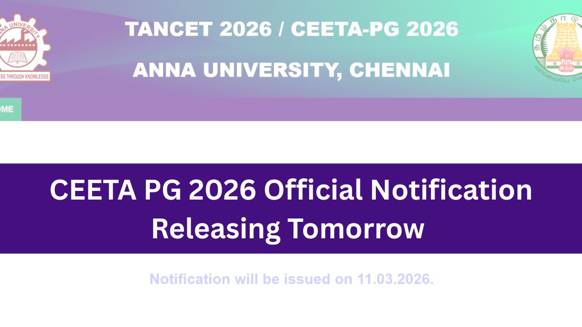 CEETA PG 2026 Official Notification Release Date OUT: Registrations soon at tancet.annauniv.edu