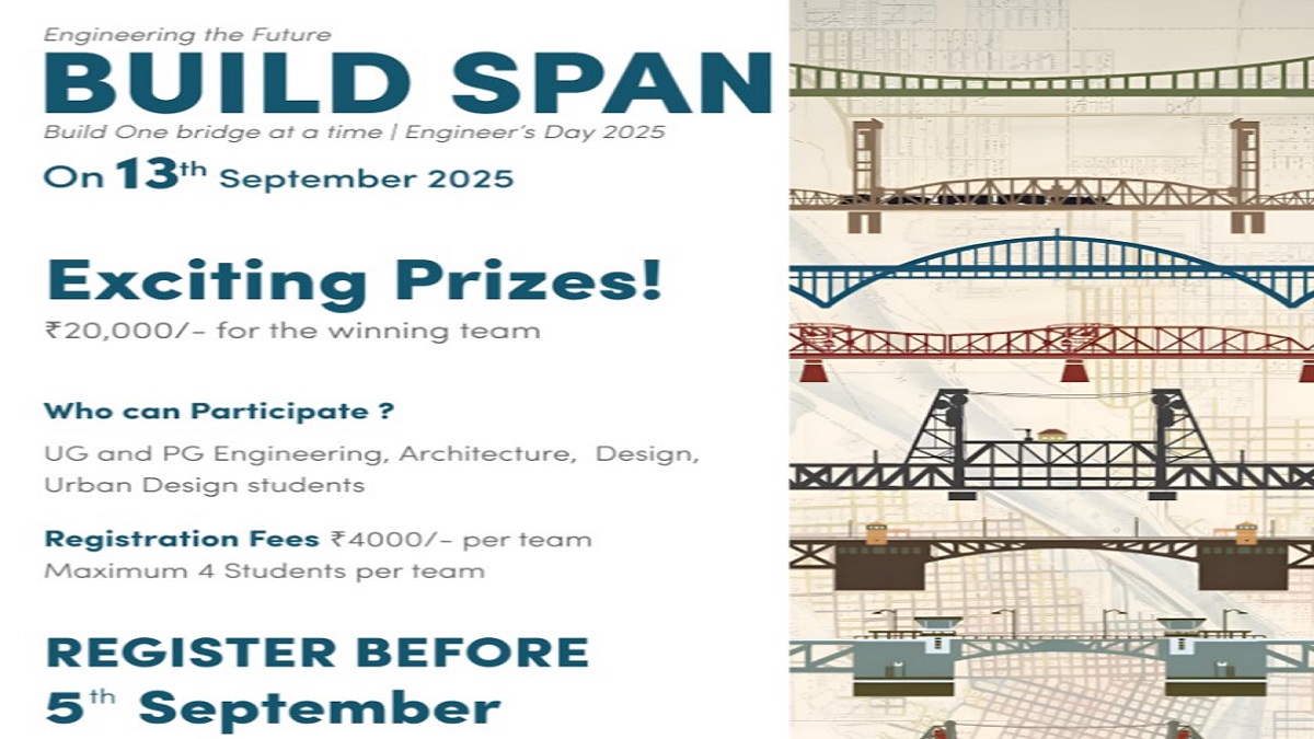 CEPT University has opened registration for BUILDSPAN 2025, a national-level bridge design and making contest that brings together innovation, engineering, and creativity. Check details here
