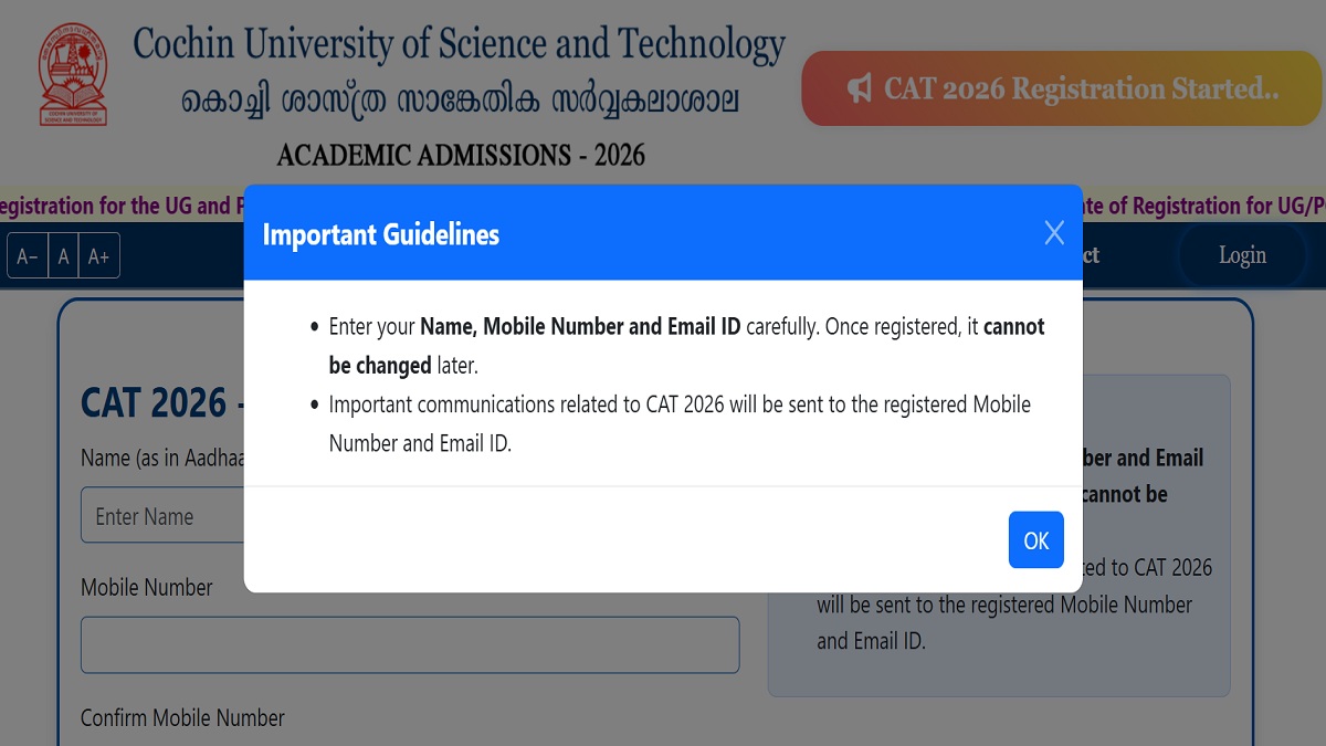 CUSAT CAT 2026 Registration Ends Today; Apply Soon at admissions.cusat.ac.in