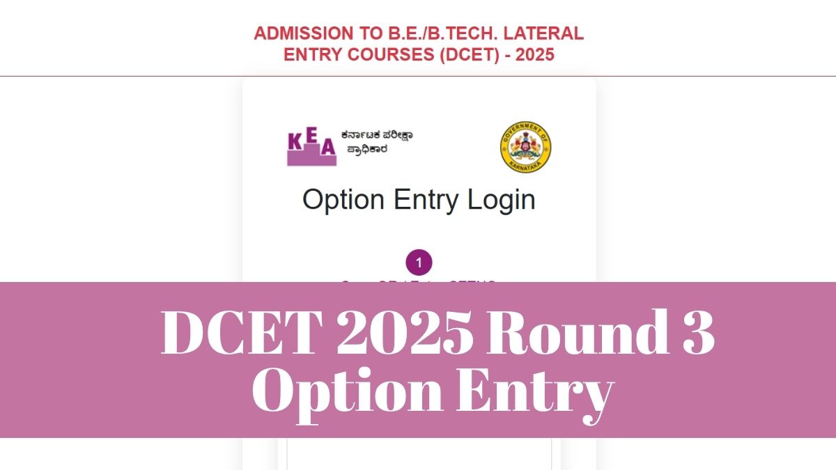 The Karnataka Examinations Authority (KEA) has commenced the DCET 2025 option entry for round 3 on August 11. The DCET round 3 option entry link has been activated on the website, cetonline.karntaka.gov.in/kea/dcet2025. Candidates require their CET number and password to fill in their choices for allotment. The last date for round 3 DCET option entry 2025 is August 16.
