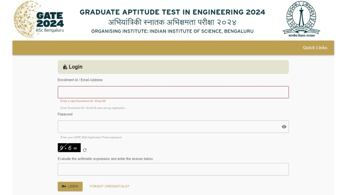- Click on the link to download the GATE admit card