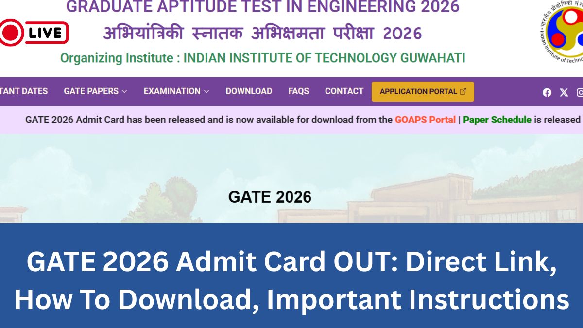 GATE 2026 Admit Card (OUT) Live Updates: GOAPS Hall Ticket Download Link Available at gate2026.iitg.ac.in