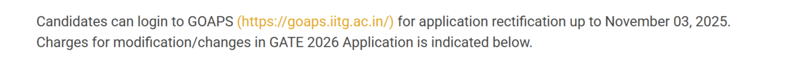 Candidates can access the GATE 2026 form correction window at GOAPS portal.