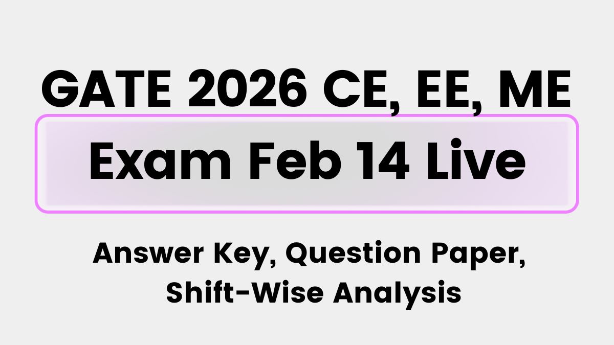 GATE 2026 CE, EE, and ME Exam Feb 14 Live: IIT Guwahati will be conducting GATE CE-1, EE exam in the first shift TODAY (Feb 14). The GATE 2026 first shift timings are 9:30 am to 12:30 pm. Once the shift is completed, applicants can check the GATE Civil Engineering (CE) & Electrical Engineering (EE) memory-based answer key, question paper, with detailed GATE 2026 Feb 14 morning shift paper analysis here. The second shift of GATE exam 2026 will be held for CE-2 and Mechanical Engineering (ME) followed by MT and CM