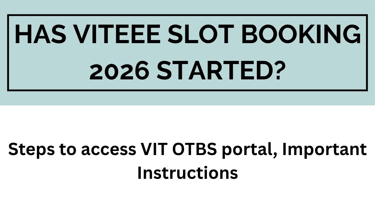 Has VITEEE slot booking 2026 started: VIT Group of Institutions will start VIT 2026 slot booking anytime soon. The slot booking can be accessible at OTBS portal. Candidates appearing for VITEEE this year can check complete details regarding VITEEE 2026 slot booking, important instructions, etc. below.