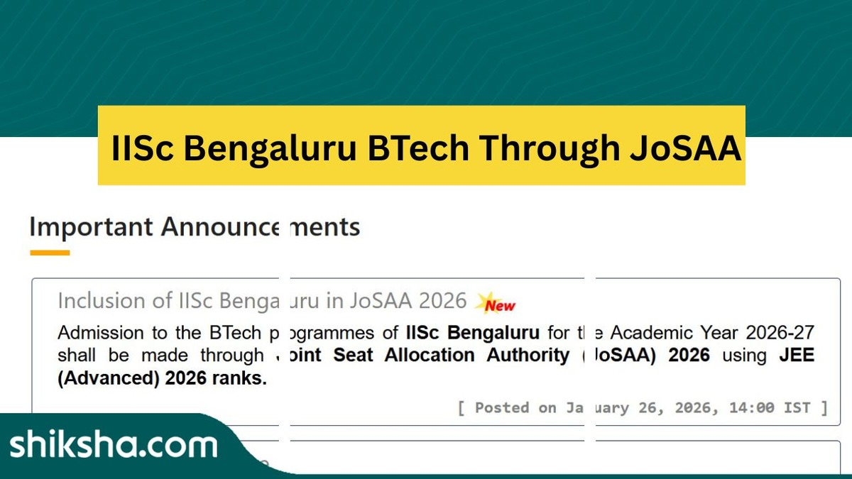 This change will streamline the IISc BTech admission process. Candidates will now have to fill the JoSAA application form through the portal josaa.nic.in. JoSAA 2026 registration will start on June 2.