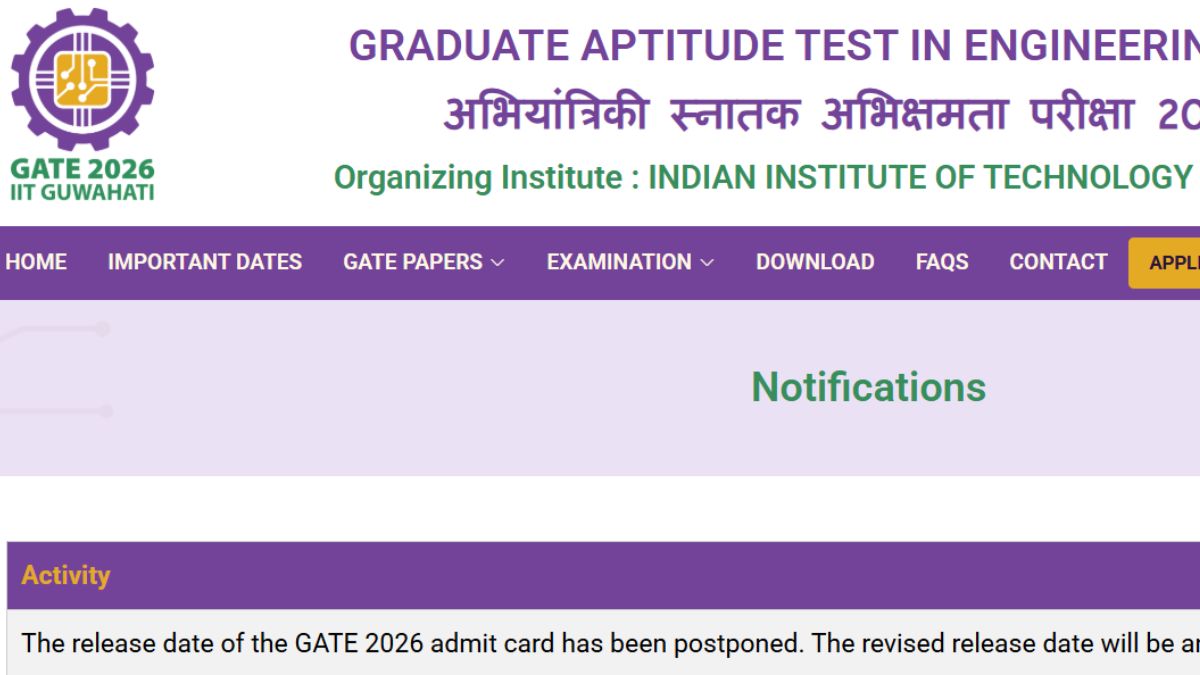 Indian Institute of Technology (IIT Guwahati) has postponed the GATE 2026 admit card release date. The authority announced the postponment on the website, gate2026.iitg.ac.in. The revised date for the GATE admit card 2026 will be notified soon. Aspirants of the Graduate Aptitude Test in Engineering (GATE) 2026 now await the revised date for the admit card download. The GATE 2026 exam date is February 7, 8, 14 and 15, 2026. M.Tech exam aspirants will be able to download their IITG GATE admit cards from the GOAPS portal once the link is activated.