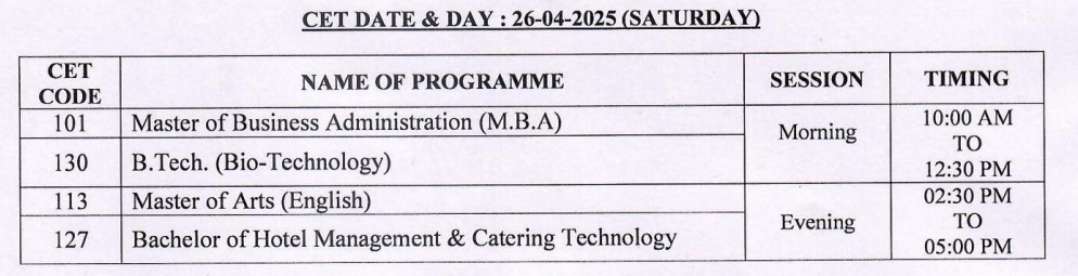 IPU CET 2025 for BTech (Biotechnology) will be conducted on April 26, 2025. The schedule of CETs to be held on April 26, 2025, and April 27, 2025, for various programmes of Guru Gobind Singh Indraprastha University, Delhi, is given below for the reference of the candidates. The exam schedule given below is final, and no requests for change of dates or sessions will be accepted.