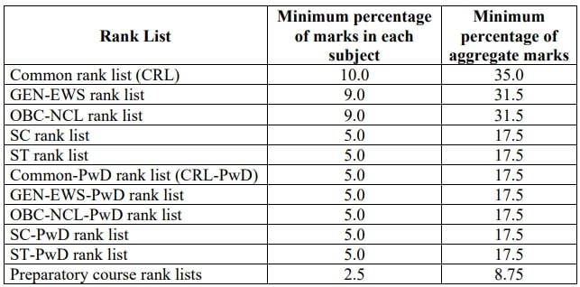 The minimum marks needed to pass the JEE Advanced 2022 entrance exam for inclusion in the rank list for IIT admissions are: