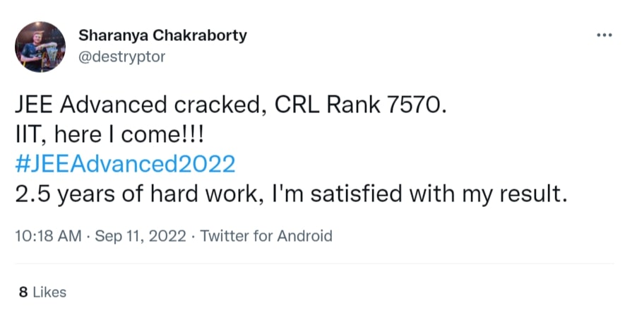 Also Read: JEE Advanced 2022 Topper is R K Shishir with a Score of 314 out of Total 360 Marks
